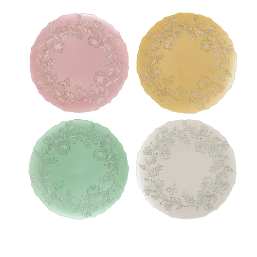 Privítajte jar so štýlom, ktorý vyráža dych. Kolekcia Spring Glass očarí každého hosťa svojou jemnou textúrou kvetín a poletujúcich motýľov. Tieto taniere nie sú len riadom – sú šperkom vášho stola. Pastelové odtiene žltej, mentolovej a staroružovej dodajú vašej jedálni nevídanú ľahkosť a noblesu.
