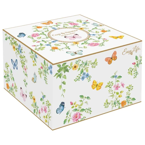 Štýlová, jemná, farebná, romantická.. presne taká je kolekcia z talianskej dielne Easylife Italy, ktorá dostala meno Dancing butterflies. Zlatý dekor pridáva šálkam a hrnčekom luxusný vzhľad a ako novinka – motýľ na uškách šálok robí túto kolekciu ešte viac jedinečnou.