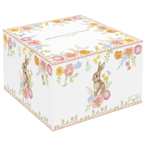 Dodajte vašim sviatkom punc elegancie s touto exkluzívnou kolekciou Trés Jolie. Každý tanier či šálka v sete zdobí detailná ilustrácia zajačika obklopeného poľnými kvetmi, pričom jemné farebné odlíšenie okrajov (modrá, oranžová, ružová a žltá) dodáva prestieraniu dynamiku a šarm.
